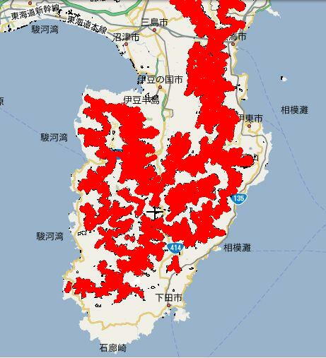 伊豆半島 1000 ft 以上の高所(赤色) 図5