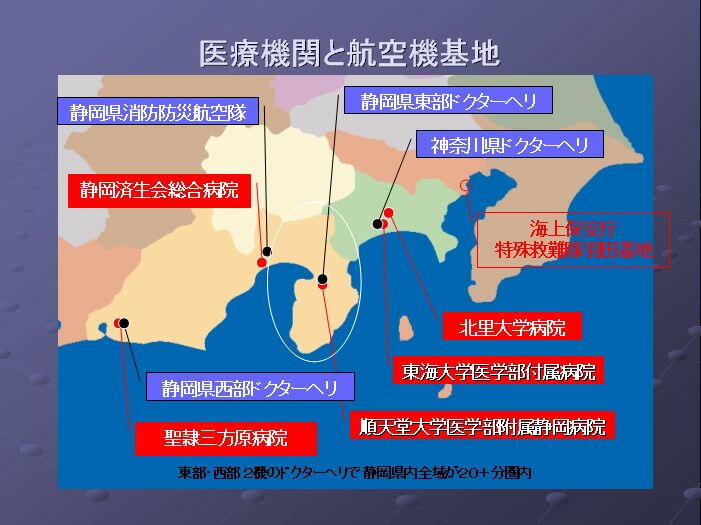 行われ、後に静岡県では「ドクターヘリ」の重要性が認識された結果、西部及び東部への2機が配備され県内全域