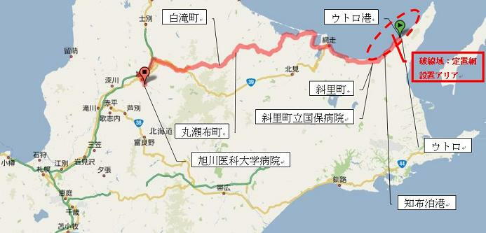 り、搬送経路は、救急車両にて、「 斜里町 → 網走市 → 佐呂間町 → 遠軽町 → 丸瀬布町 →